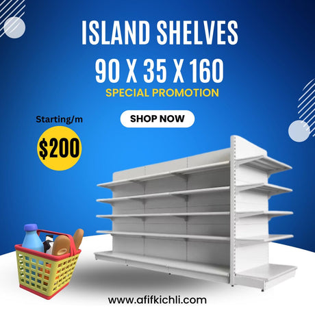 Wall single supermarket shelves 50kg load 195cm
