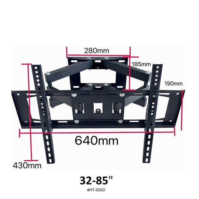 This Full Motion TV Wall Mount is designed for screens between 40" and 80". Made from durable steel, it provides full motion adjustment, allowing you to find the perfect viewing angle. With a weight load capacity of 50 kg, it ensures secure mounting for larger TVs.